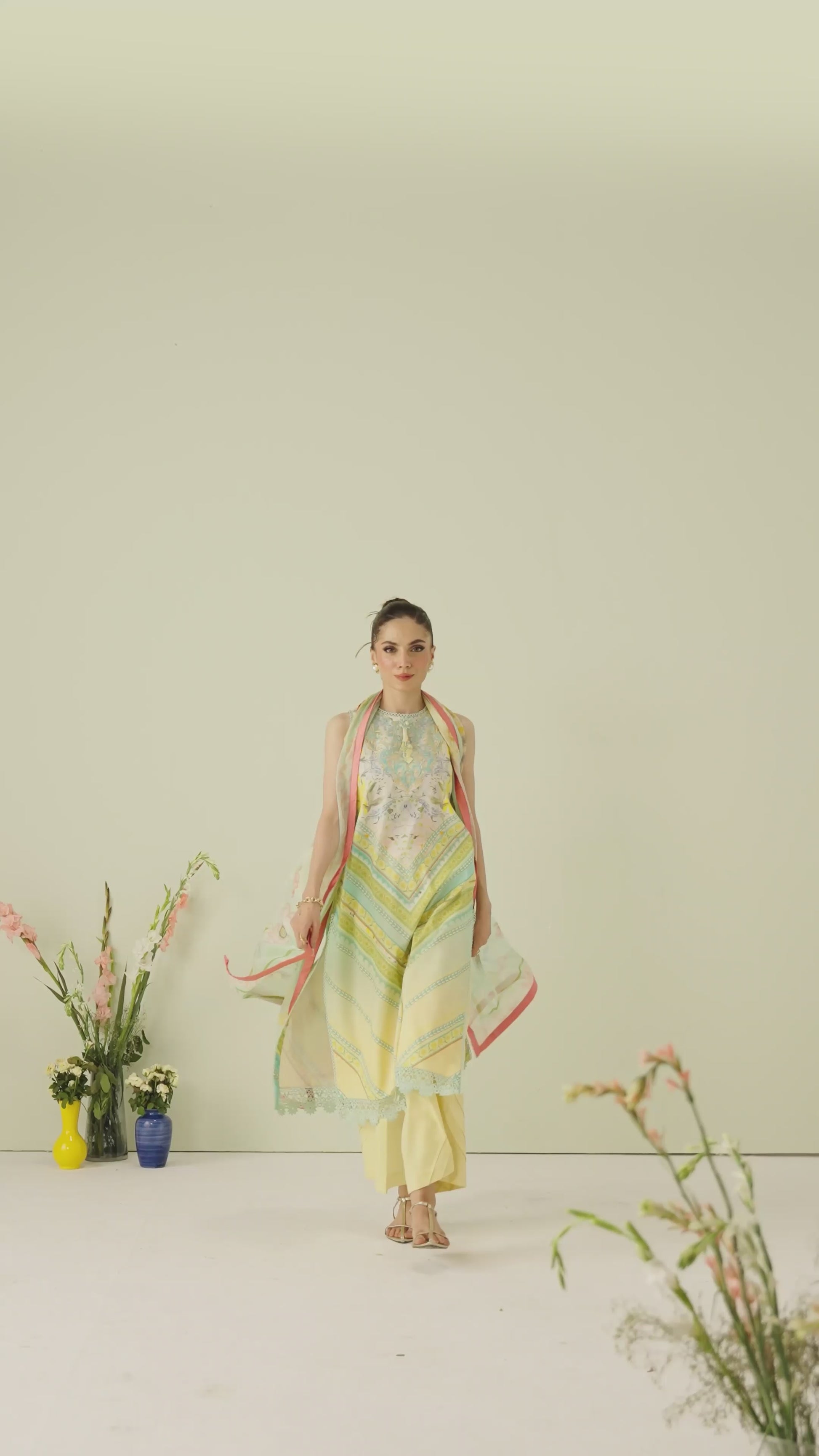 All laces used for finishing of the stitched outfit especially the dupatta or trousers may vary from the shoot.