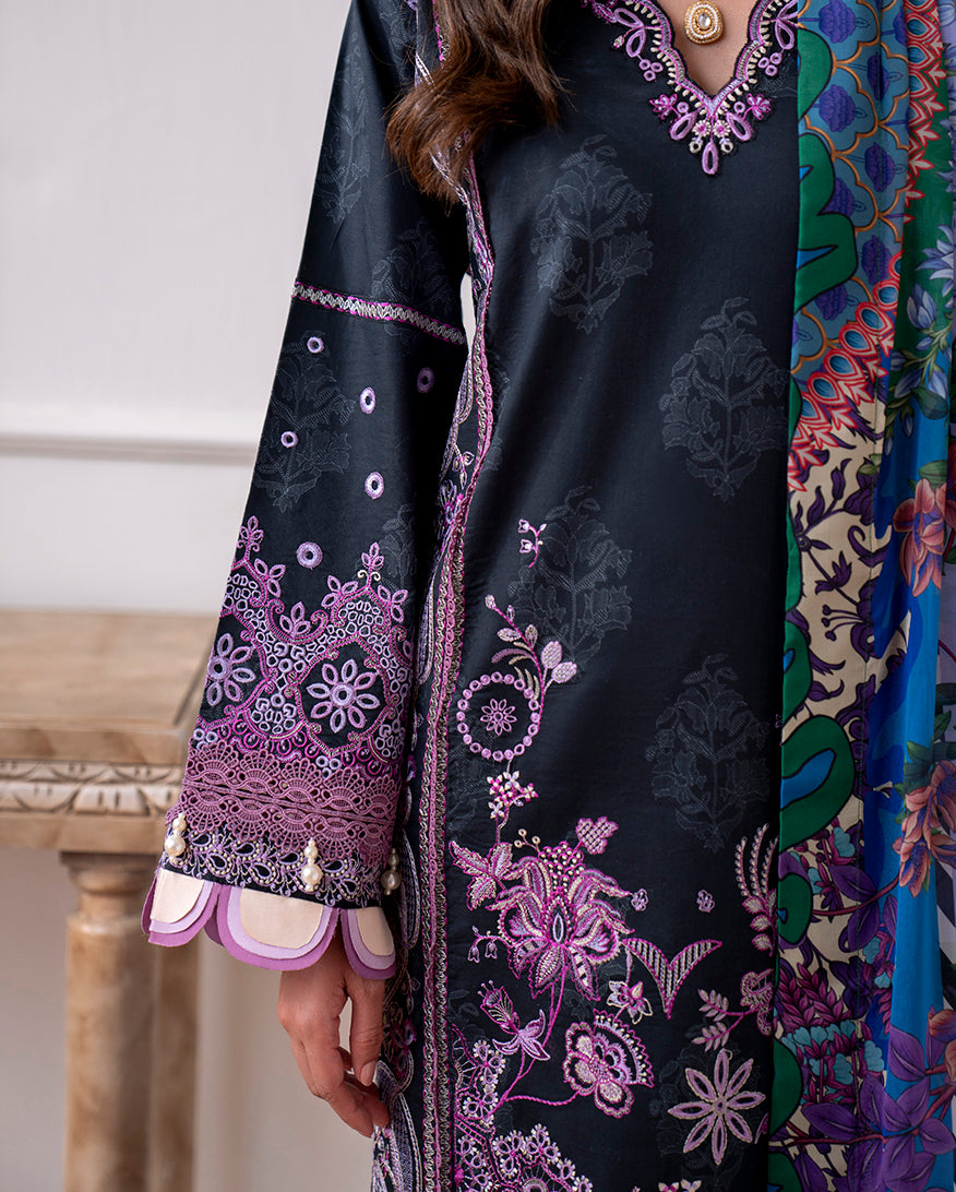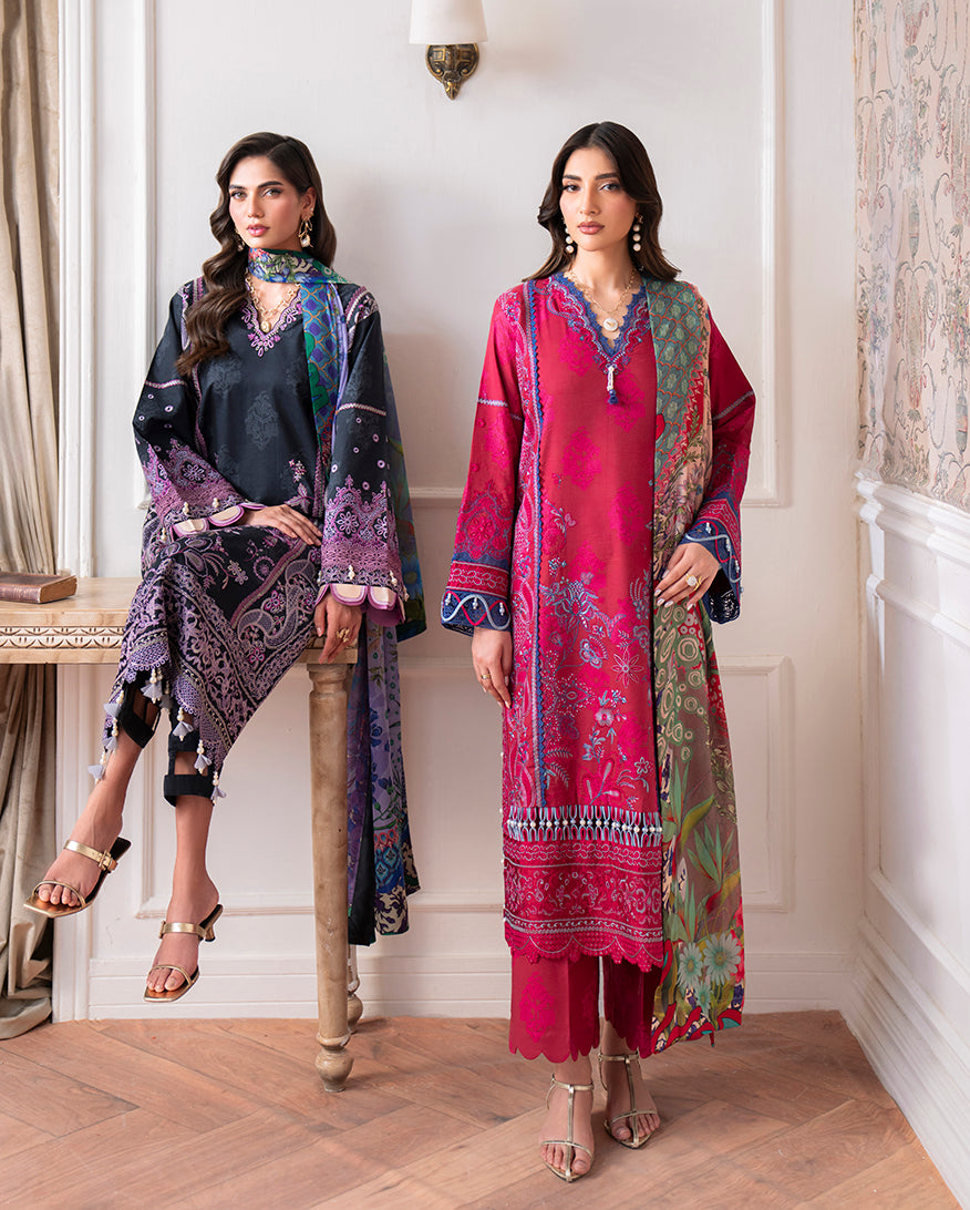 All laces used for finishing of the stitched outfit especially the dupatta or trousers may vary from the shoot.