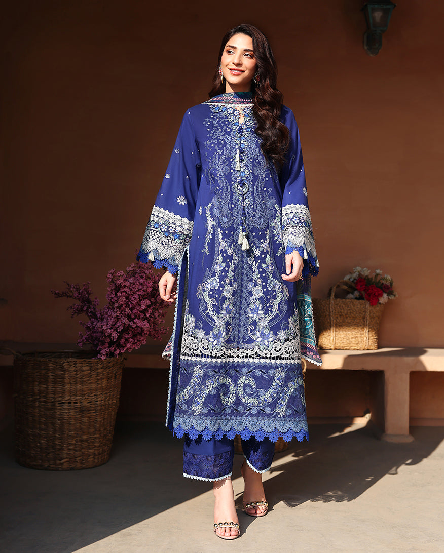 • Embroidered lawn front right panel