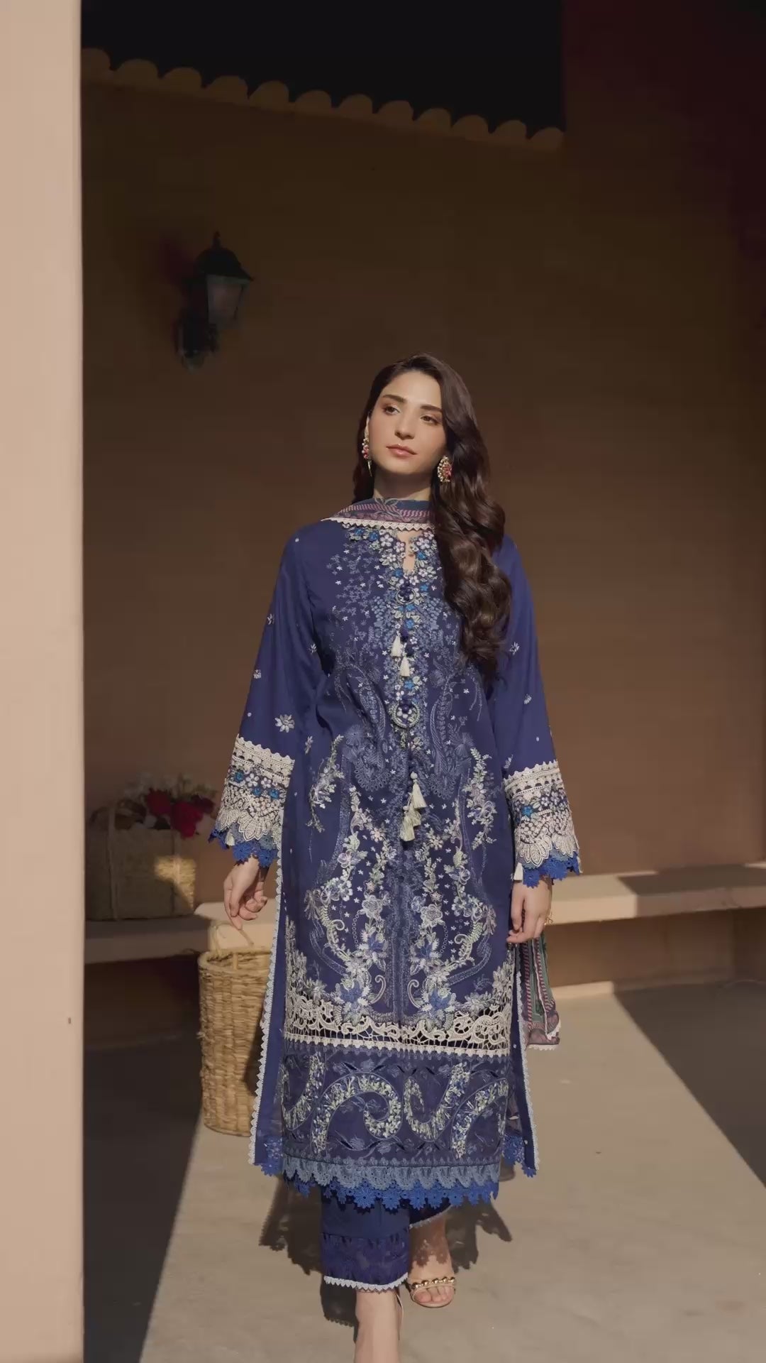 All laces used for finishing of the stitched outfit especially the dupatta or trousers may vary from the shoot.