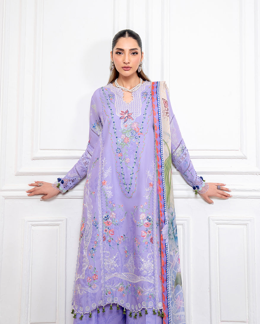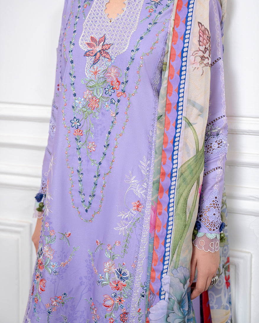 All laces used for finishing of the stitched outfit especially the dupatta or trousers may vary from the shoot.