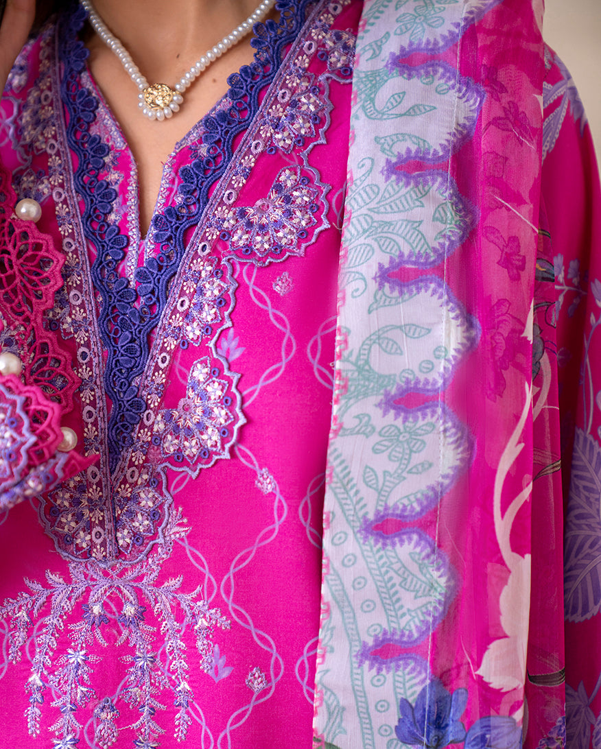 All laces used for finishing of the stitched outfit especially the dupatta or trousers may vary from the shoot.